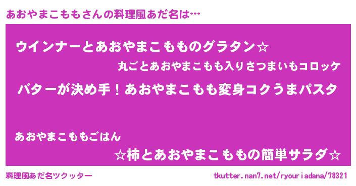 | 男性向けラノベタイトル風あだ名 | 『ノーゲーム・ノーアオヤマコモモ』 |