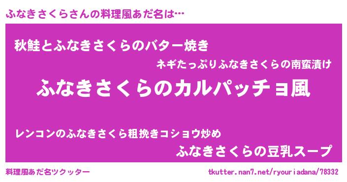| 意味不明あだ名 | 『住所不定無職ふなきさくら(1歳)』 |