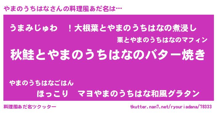 | 胡散臭い通販商品みたいなあだ名 | 『来世でも幸せになれる健康食品…その名も「やまのうちはな」』 |