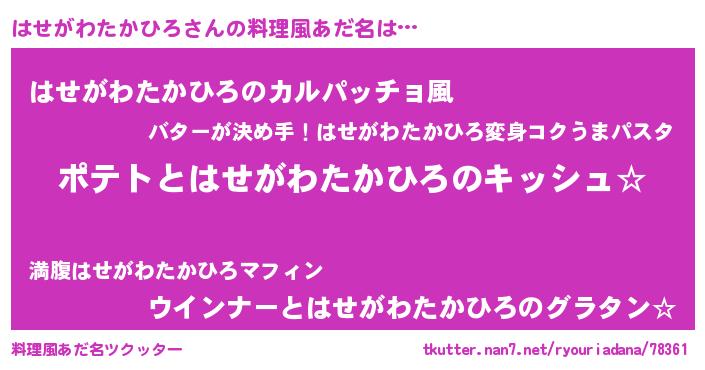| 胡散臭い通販商品みたいなあだ名 | 『伝統あるサプリメント…その名も「はせがわたかひろ」』 |