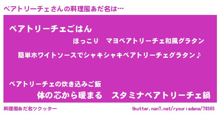 | 男性向けラノベタイトル風あだ名 | 『ベアトリーチェの嫁は女の子じゃないと思った?』 |