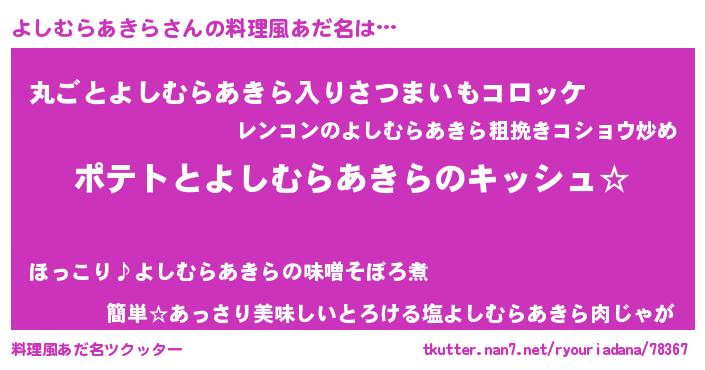 | ヘコむあだ名 | 『よしぷりん』『よしむらあきら(小並感)』 |