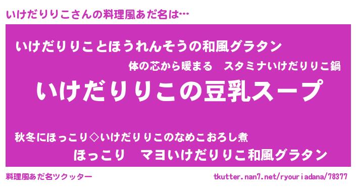 | 胡散臭い通販商品みたいなあだ名 | 『信頼と実績のサプリメント…その名も「いけだりりこ」』 |