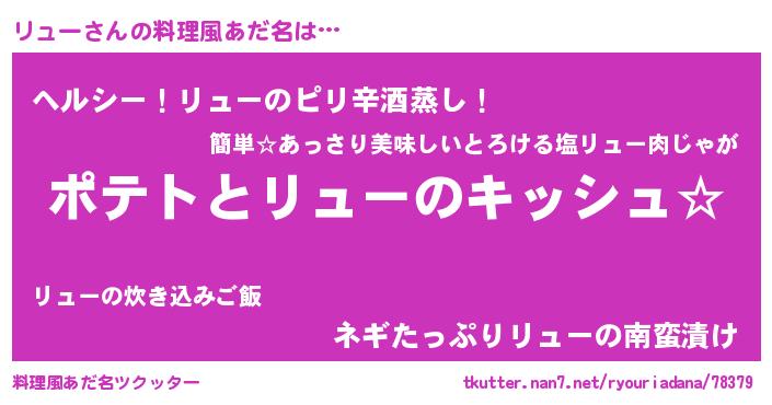 | ヘコむあだ名 | 『リュぷりん』『リュもー』『豆乳』 |