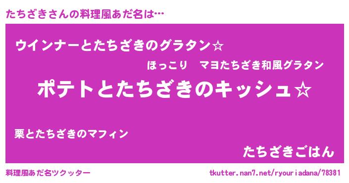 | 女子向けラノベタイトル風あだ名 | 『たちざきの卵を拾いまして』 |