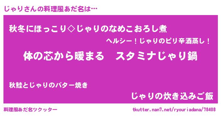 | 女子向けラノベタイトル風あだ名 | 『じゃりの雑貨屋さん』『闇のじゃり』 |