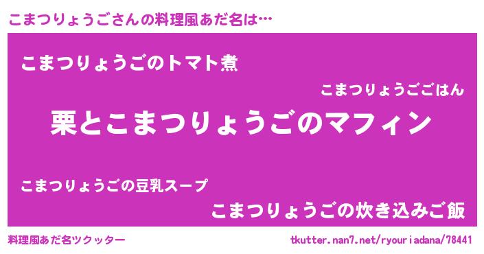 | ヘコむあだ名 | 『こまっ子』『牛乳』『こまふぇ~』 |