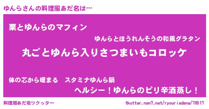 | 女子向けラノベタイトル風あだ名 | 『乙女ゲームの破滅フラグしかない悪役ゆんらに転生してしまった…』 |
