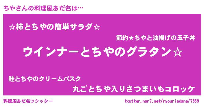 | 意味不明あだ名 | 『ちやフォーエバー』『ペロリンちや』 |