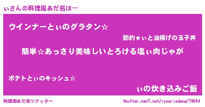 | ヘコむあだ名 | 『ぃ(遠い目)』『豆乳』『ぃにー』 |