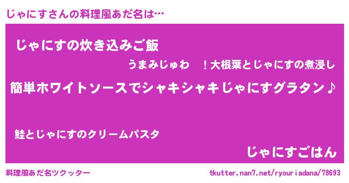 | 男性向けラノベタイトル風あだ名 | 『じゃにすの嫁は女の子じゃないと思った?』 |