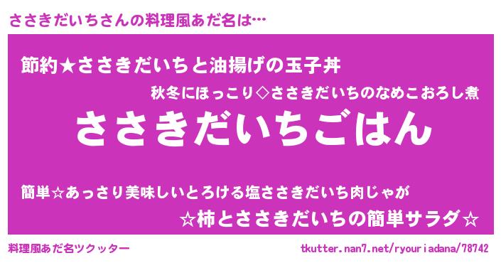 | 男性向けラノベタイトル風あだ名 | 『ササキダイチスレイヤー』 |