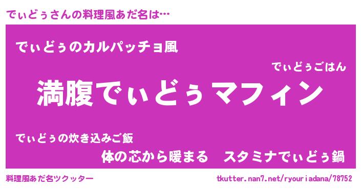 | 胡散臭い通販商品みたいなあだ名 | 『絶対に幸福をもたらす健康食品…その名も「でぃどぅ」』 |