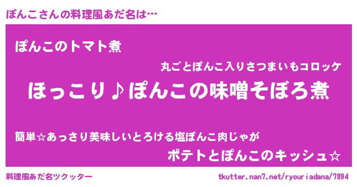 | 男性向けラノベタイトル風あだ名 | 『ぽんこの憂鬱』『魔弾の王とぽんこ』 |