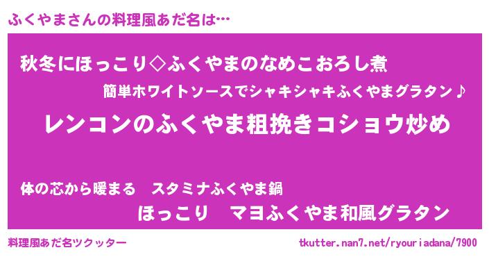 | ヘコむあだ名 | 『ふくを』『レバニラ』『ふくふぇ~』 |