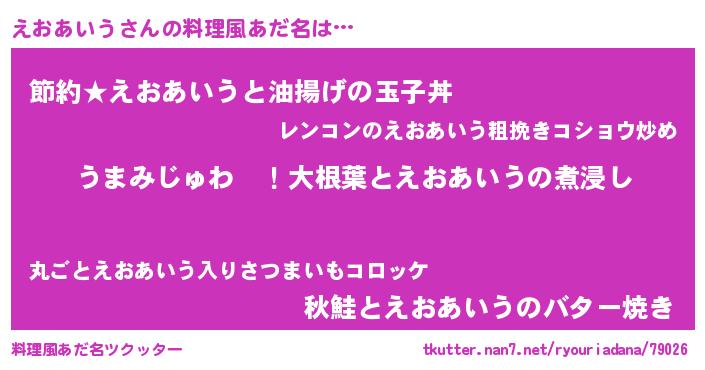 | ファンタジー風あだ名 | 『エターナルエオアイウー』『エオフェル』 |