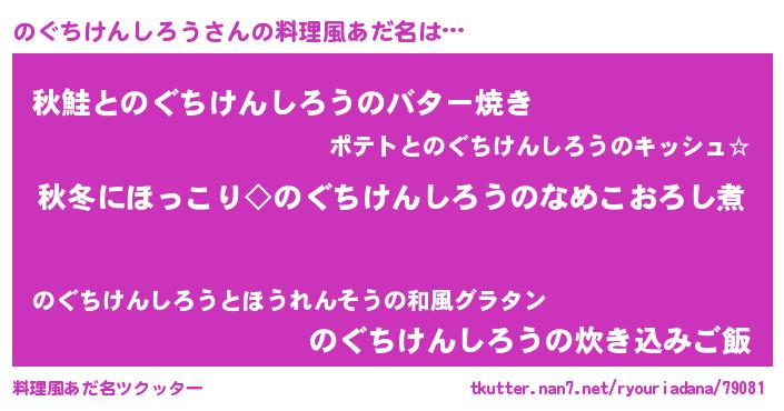 | ヘコむあだ名 | 『のぐちけんしろう(笑)』『のぐお』 |