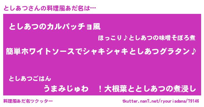| 男性向けラノベタイトル風あだ名 | 『としあつの嫁は女の子じゃないと思った?』 |