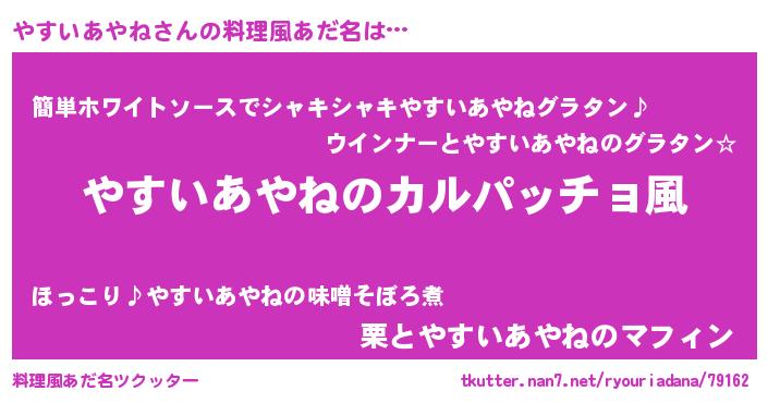 | ポケモン風あだ名 | 『ヤースイ』『ヒヤスイアヤネ』 |