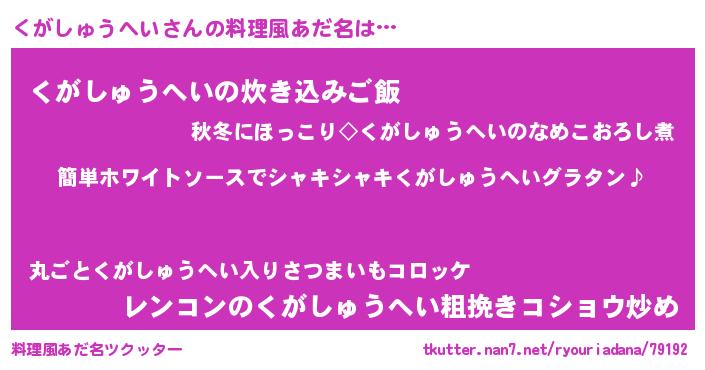 | 胡散臭い通販商品みたいなあだ名 | 『全米が絶賛したサプリメント…その名も「くがしゅうへい」』 |