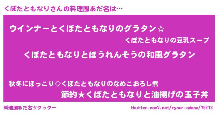 | 女子向けラノベタイトル風あだ名 | 『くぼたともなりの玉の輿計画!』 |