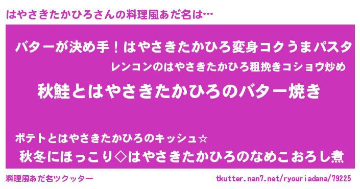 | ヘコむあだ名 | 『はやさきたかひろ(遠い目)』『はやっちょ』 |
