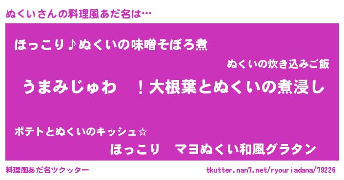 | ポケモン風あだ名 | 『ヌクイダネ』『ヌクチュウ』 |