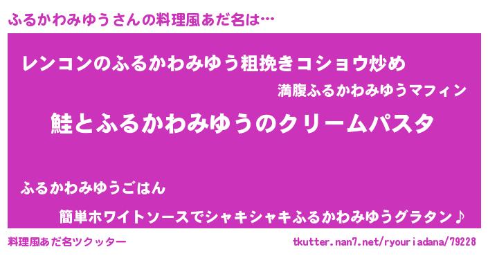 | 男性向けラノベタイトル風あだ名 | 『ノーゲーム・ノーフルカワミユウ』 |