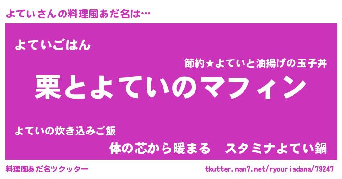 | ヘコむあだ名 | 『豆乳』『よてふぇ~』『よてっ子』 |
