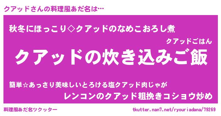 | ヘコむあだ名 | 『クアッド(小並感)』『クアお』 |