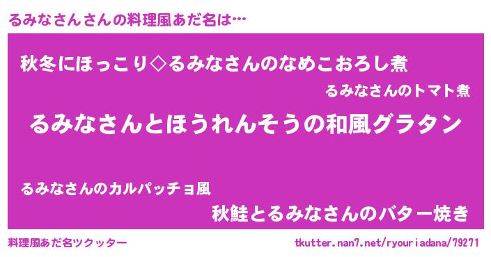 | 胡散臭い通販商品みたいなあだ名 | 『来世でも幸せになれる健康食品…その名も「るみなさん」』 |