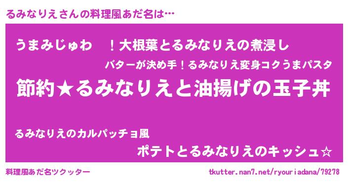 | ヘコむあだ名 | 『るみもー』『レバニラ』『るみ太郎』 |
