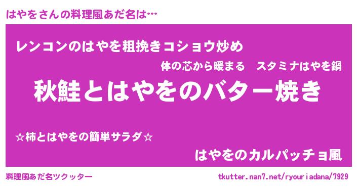 | ヘコむあだ名 | 『はやを(笑)』『レバニラ』 |