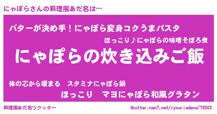 | 男性向けラノベタイトル風あだ名 | 『冴えないにゃぽらの育てかた』 |