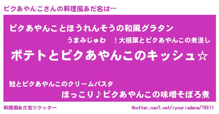 | 男性向けラノベタイトル風あだ名 | 『ダンジョンにピクあやんこを求めるのは間違っているだろうか』 |