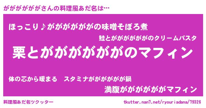 | 胡散臭い通販商品みたいなあだ名 | 『必ず成功するブレスレット…その名も「がががががが」』 |