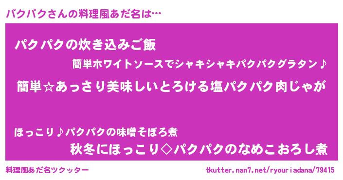 | 胡散臭い通販商品みたいなあだ名 | 『前代未聞の健康食品…その名も「パクパク」』 |