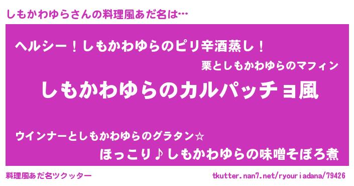 | 恥ずかしいあだ名 | 『シモカワユラデラックス』『しもっちょ』 |