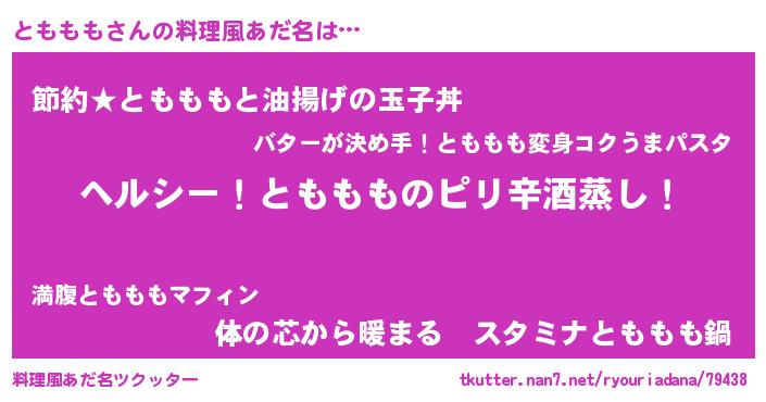 | 男性向けラノベタイトル風あだ名 | 『Re:ともももから始める異世界生活』 |