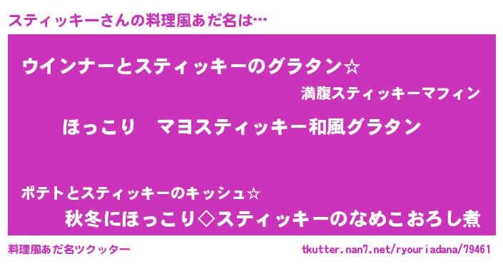 | ヘコむあだ名 | 『酢こんぶ』『スティッキー(爆)』 |