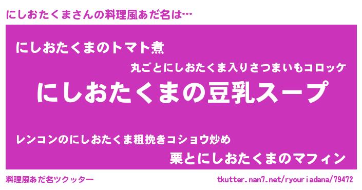 | 意味不明あだ名 | 『とにかく怪しいにしおたくま』 |