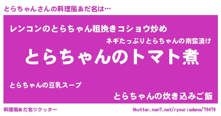 | 男性向けラノベタイトル風あだ名 | 『おまえをオタクにしてやるから、俺をとらちゃんにしてくれ! 』 |
