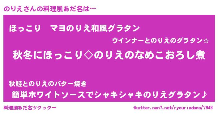 | 男性向けラノベタイトル風あだ名 | 『のりえに滅ぼされるだけの簡単なお仕事です』 |