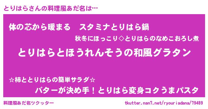 | ポケモン風あだ名 | 『トリキング』『トリハダネ』 |