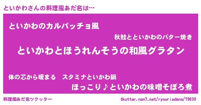 | 男性向けラノベタイトル風あだ名 | 『といかわ~年齢イコール彼女いない歴の魔法使い~』 |