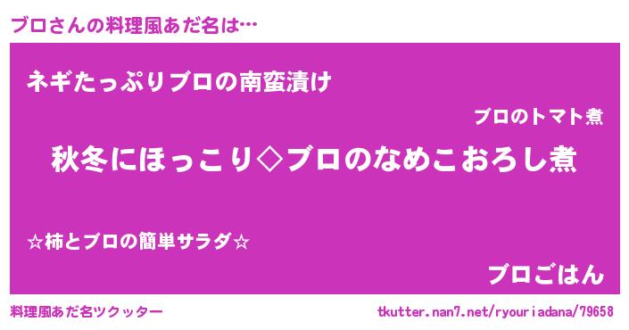 | 男性向けラノベタイトル風あだ名 | 『ブロに滅ぼされるだけの簡単なお仕事です』 |