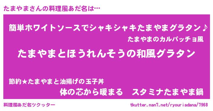 | 男性向けラノベタイトル風あだ名 | 『転生したらたまやまだった件』 |