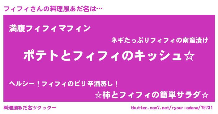 | 女子向けラノベタイトル風あだ名 | 『フィフィの卵を拾いまして』 |