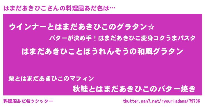 | ヘコむあだ名 | 『酢こんぶ』『はまだあきひこ(笑)』 |