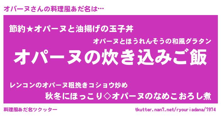 | ヘコむあだ名 | 『オパっふぃ~』『オパーヌ(震え声)』 |